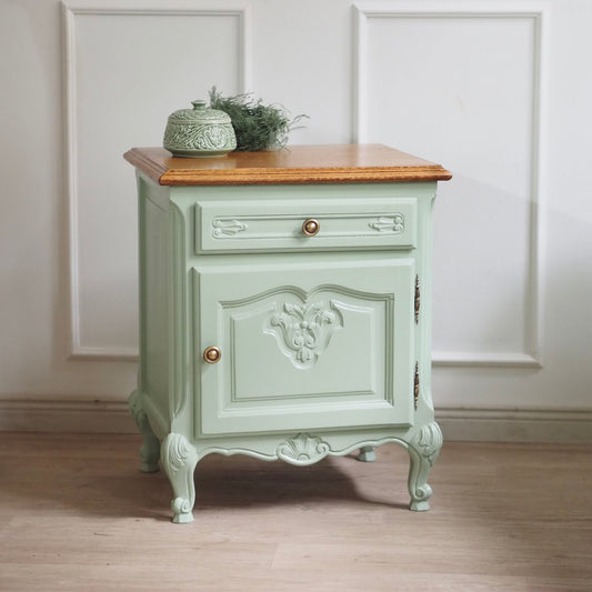 EPOCHE 1920 - Französischer Nachttisch im Landhaus Stil, Nachtschrank in mintgrün