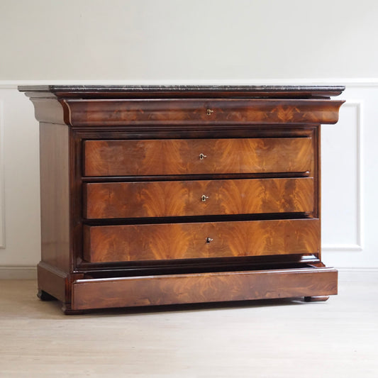 EPOCHE 1850 - Französische Kommode mit schwarzem Marmor - Louis-Philippe, Mahagoni