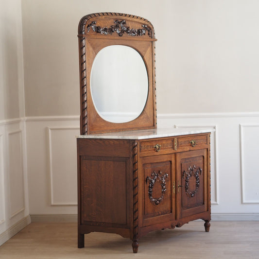 Antike Spiegelkommode mit weißer Marmorplatte im Louis-XVI-Stil