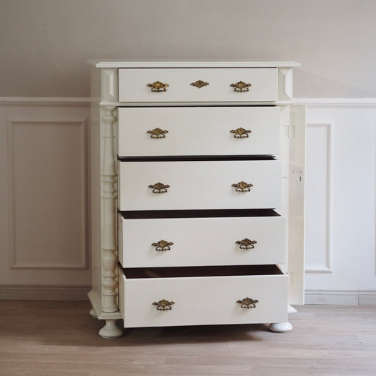 EPOCHE 1890 - Gründerzeit Kommode in Altweiß gefasst mit Schubladen und raffiniertem Schloss