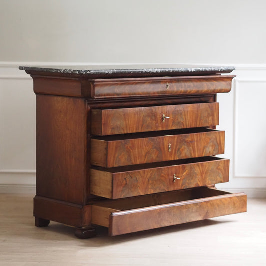 EPOCHE 1850 - Französische Kommode mit schwarzem Marmor - Louis-Philippe, Mahagoni