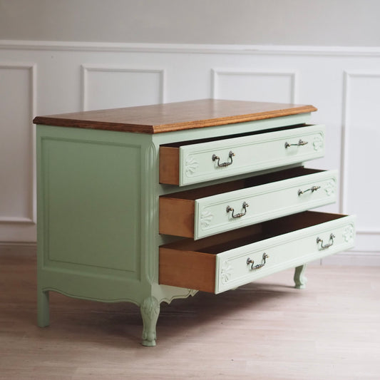 EPOCHE 1920 - Französische Landhaus Kommode patiniert in mintgrün - Louis XV Stil