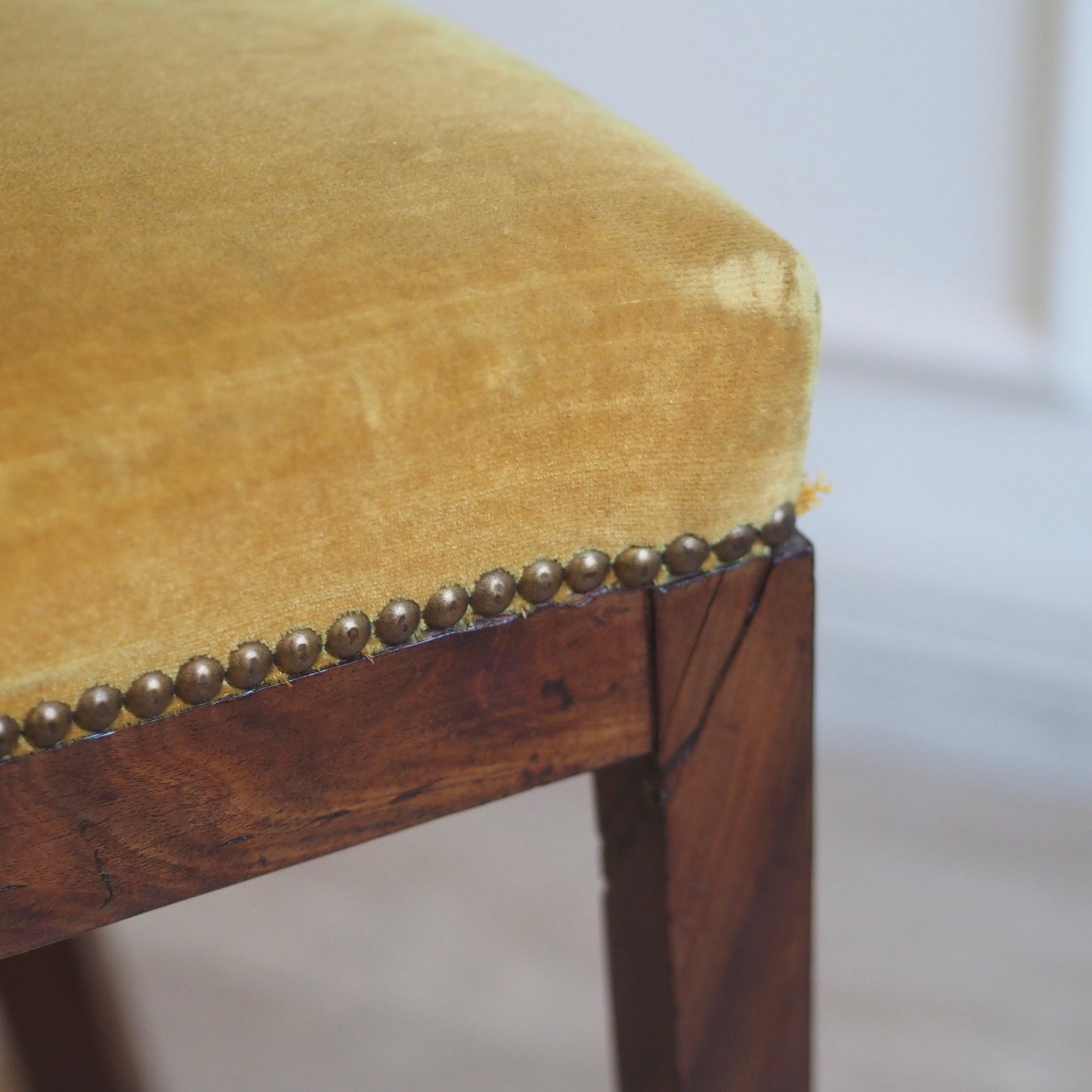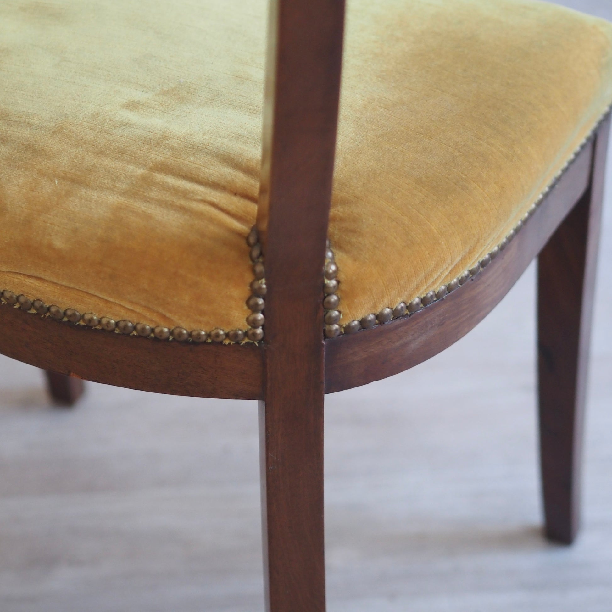 - Hochwertige Verarbeitung mit massivem Kirschholz, Originalbezug in goldenem Samt mit Ziernägeln
