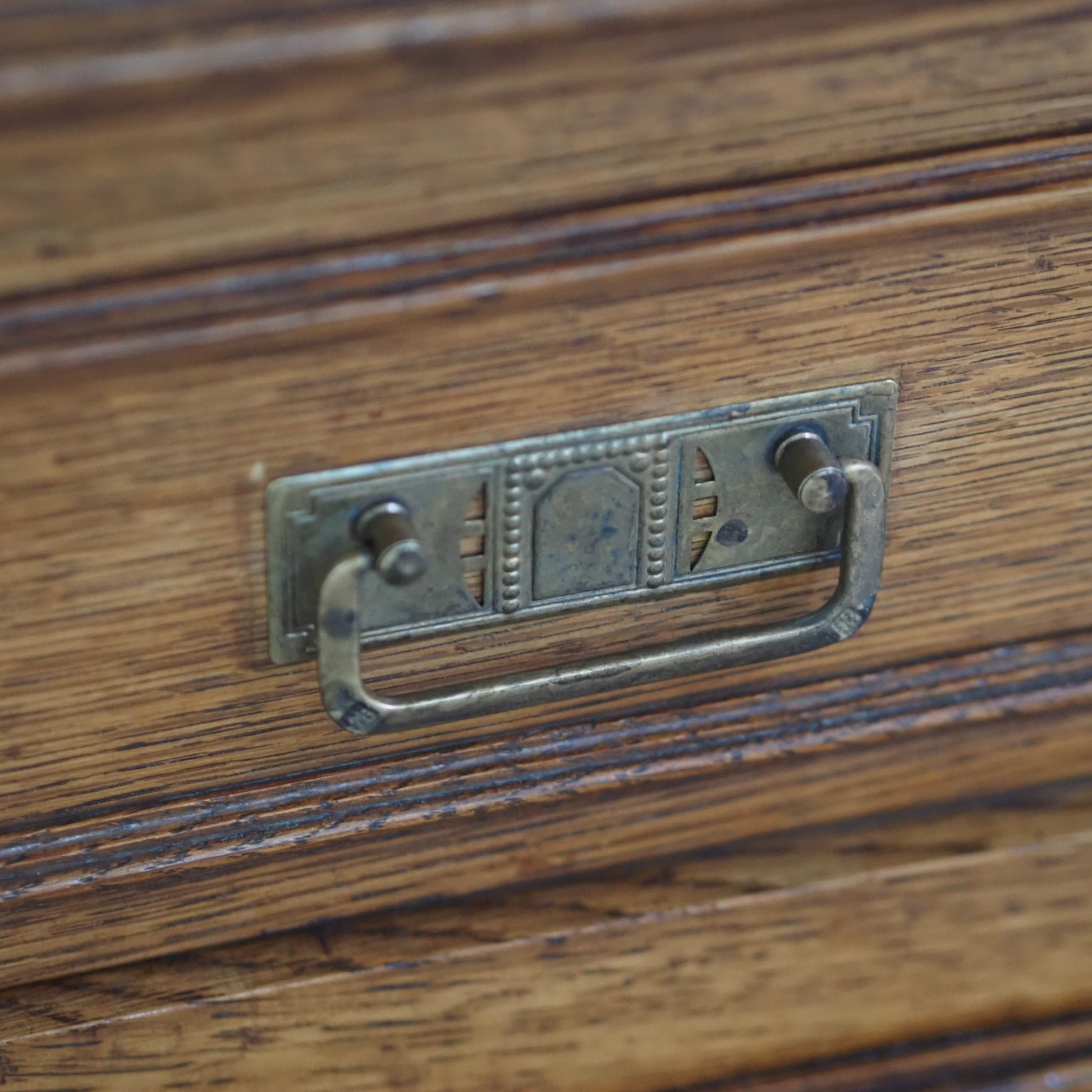 Material: Massivholz Eiche, originale Spiegel mit Facettenschliff, Messingbeschläge