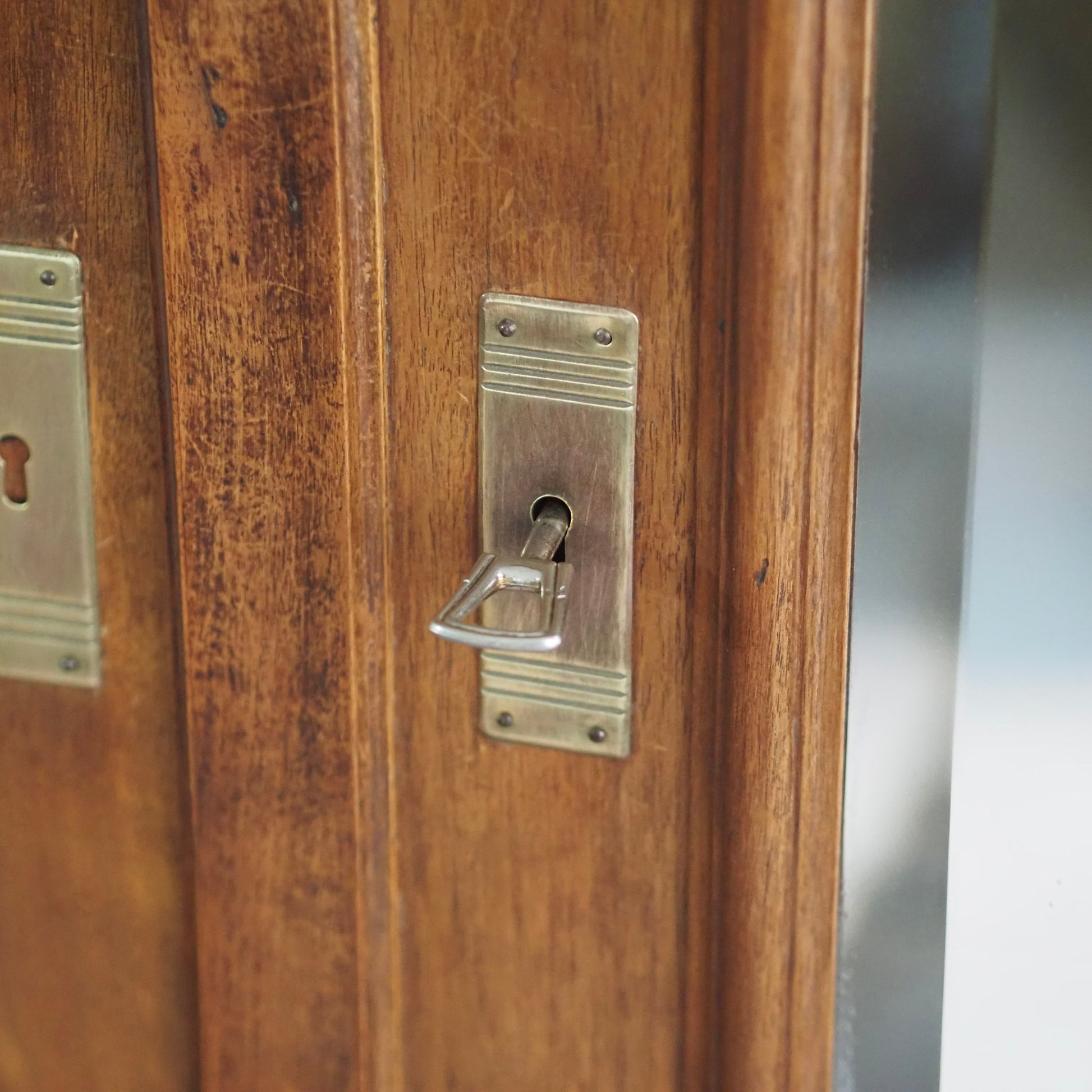 Material: Massivholz Nussbaum, originale Spiegel mit Facettenschliff, Messingbeschläge