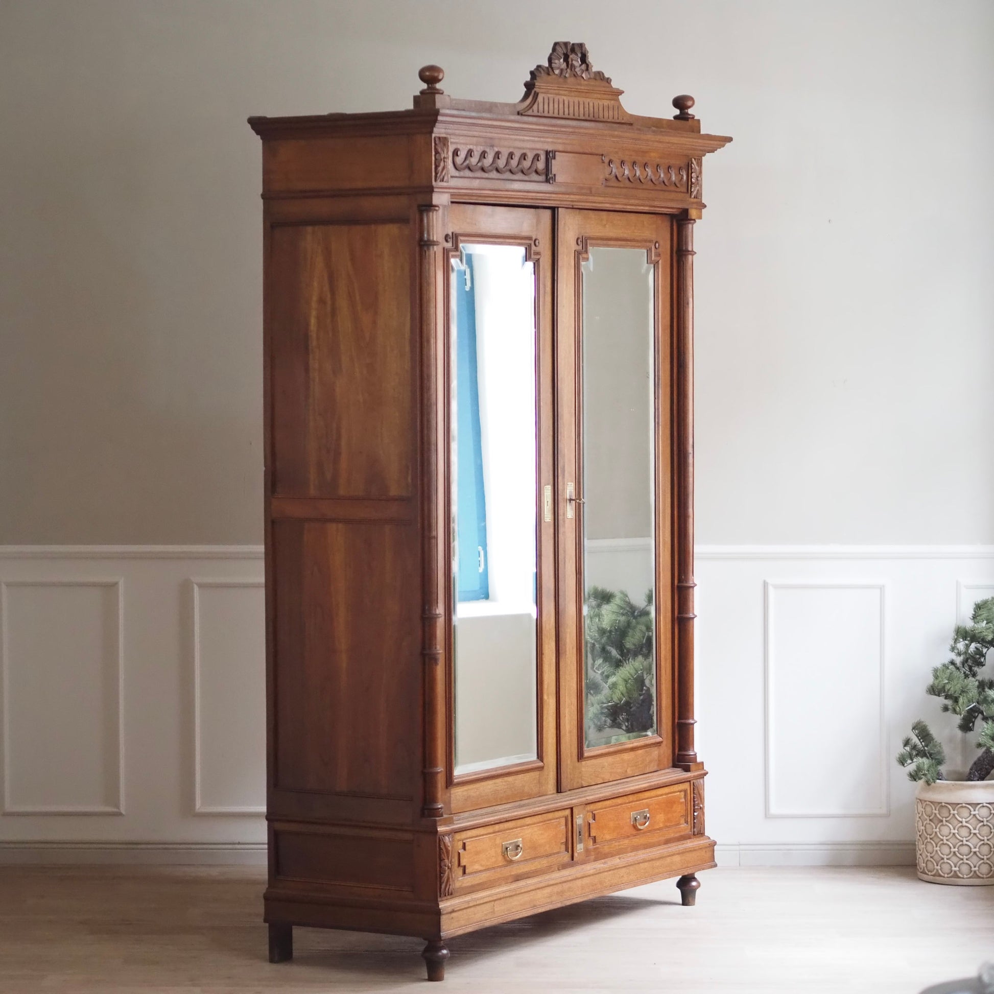 EPOCHE 1890 - Antiker französischer Spiegel-Kleiderschrank, 2-türig, Gründerzeit