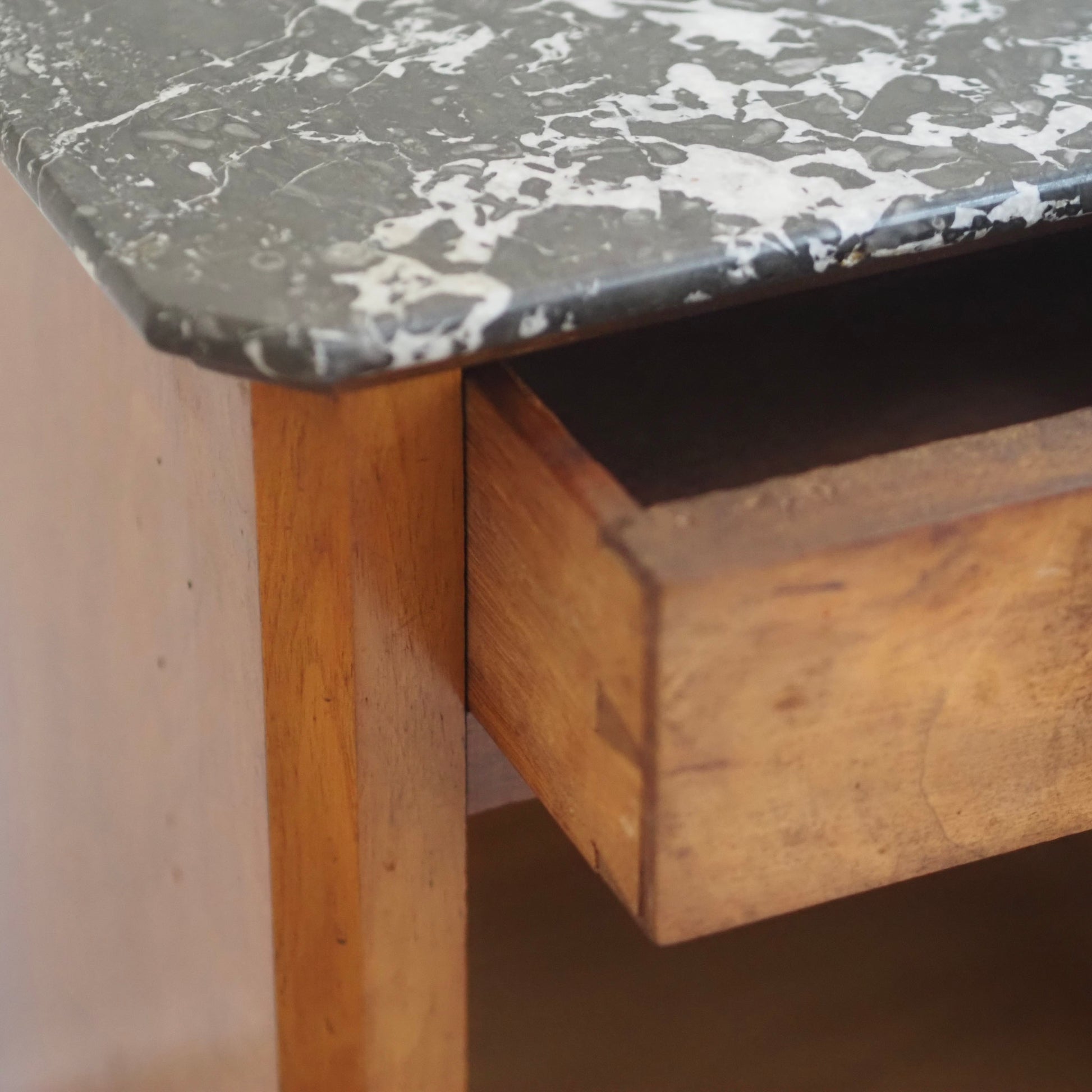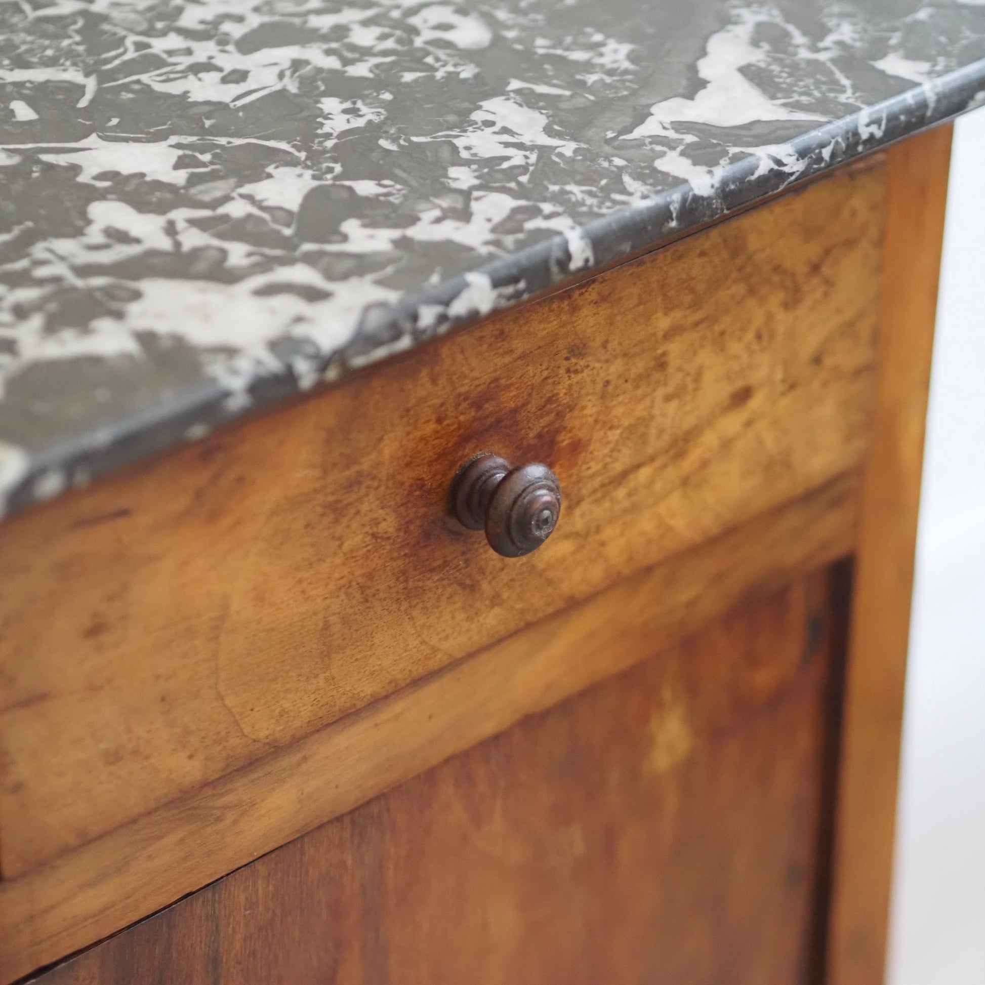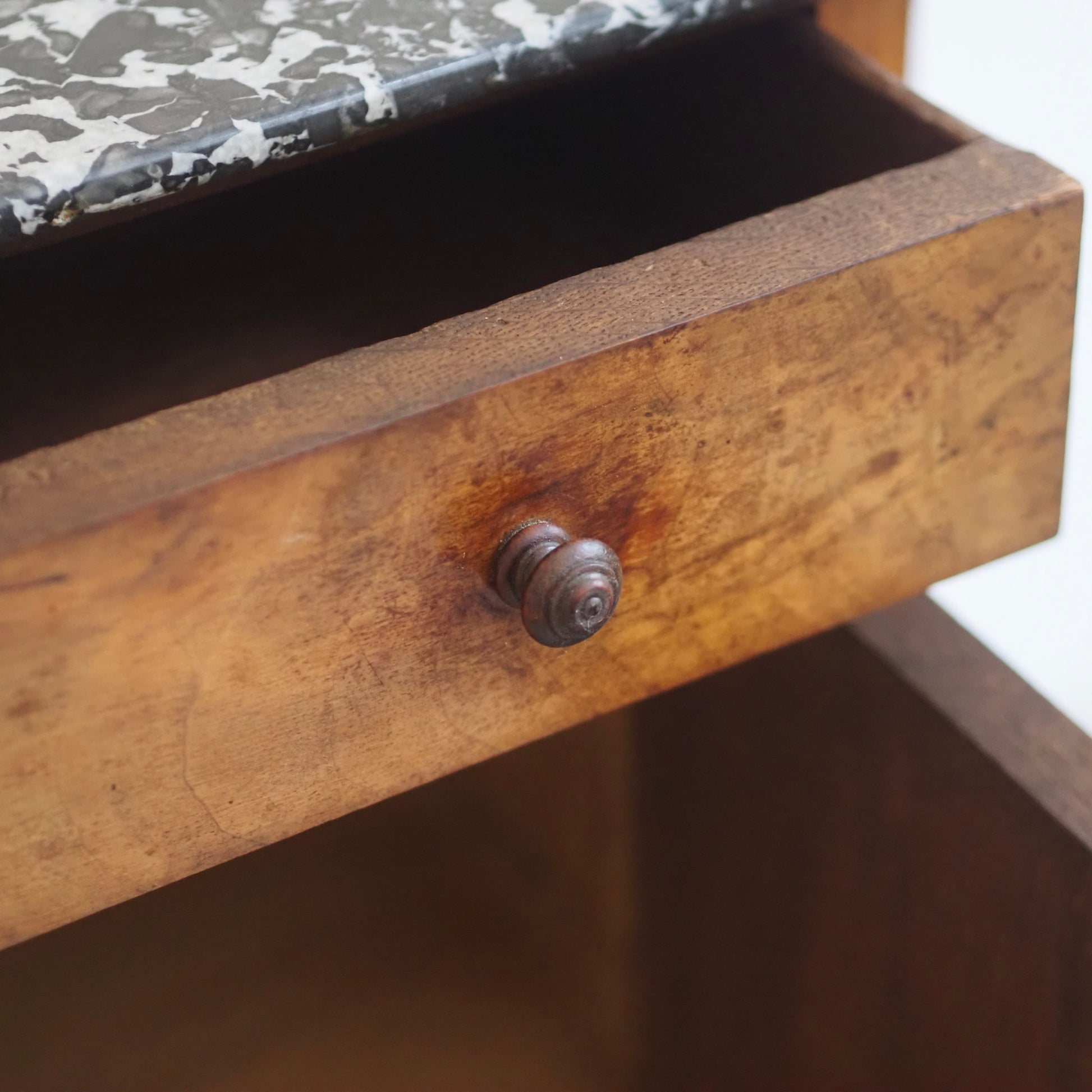 EPOCHE 1900 - Antiker Nachtschrank aus Wurzelholz mit schwarzem Marmor