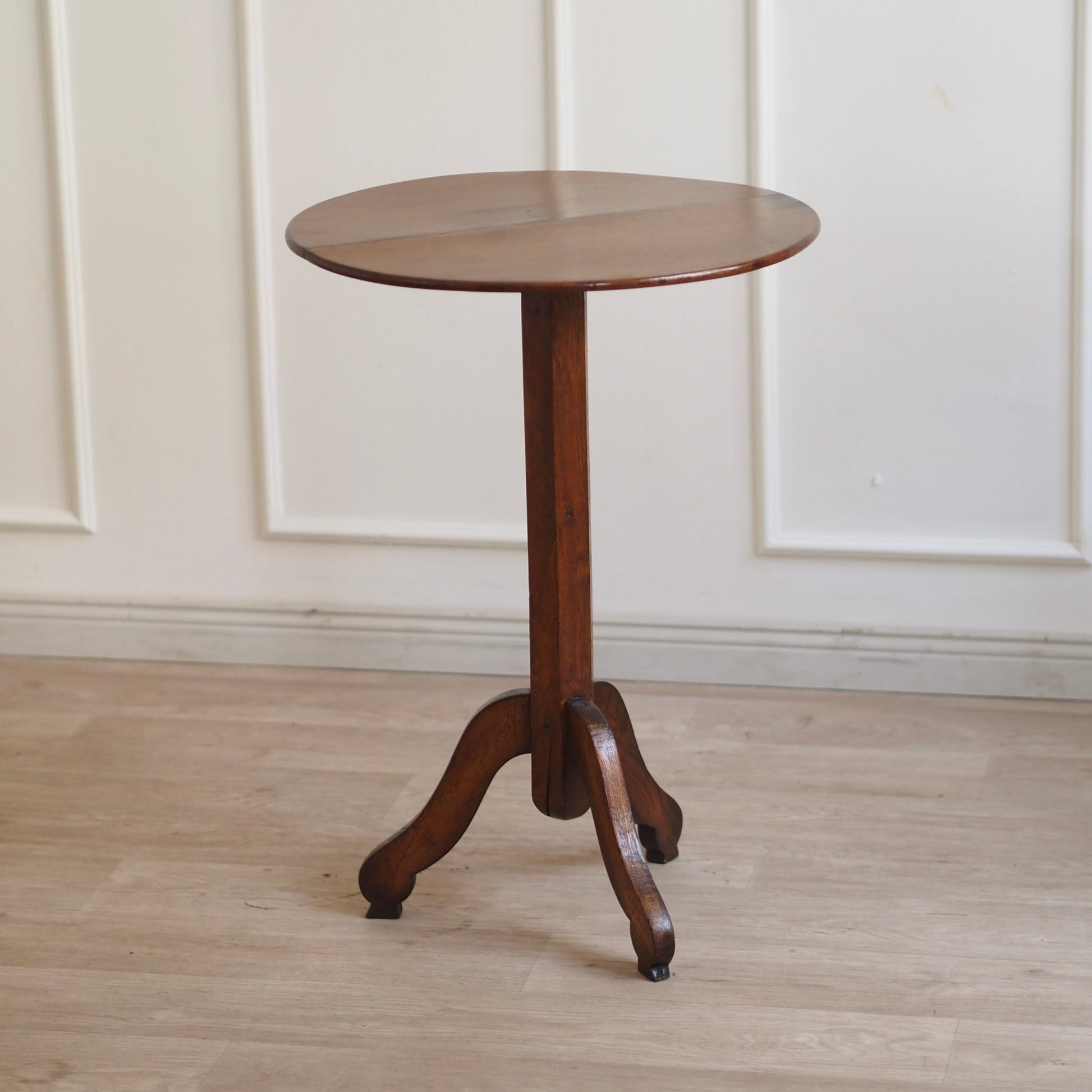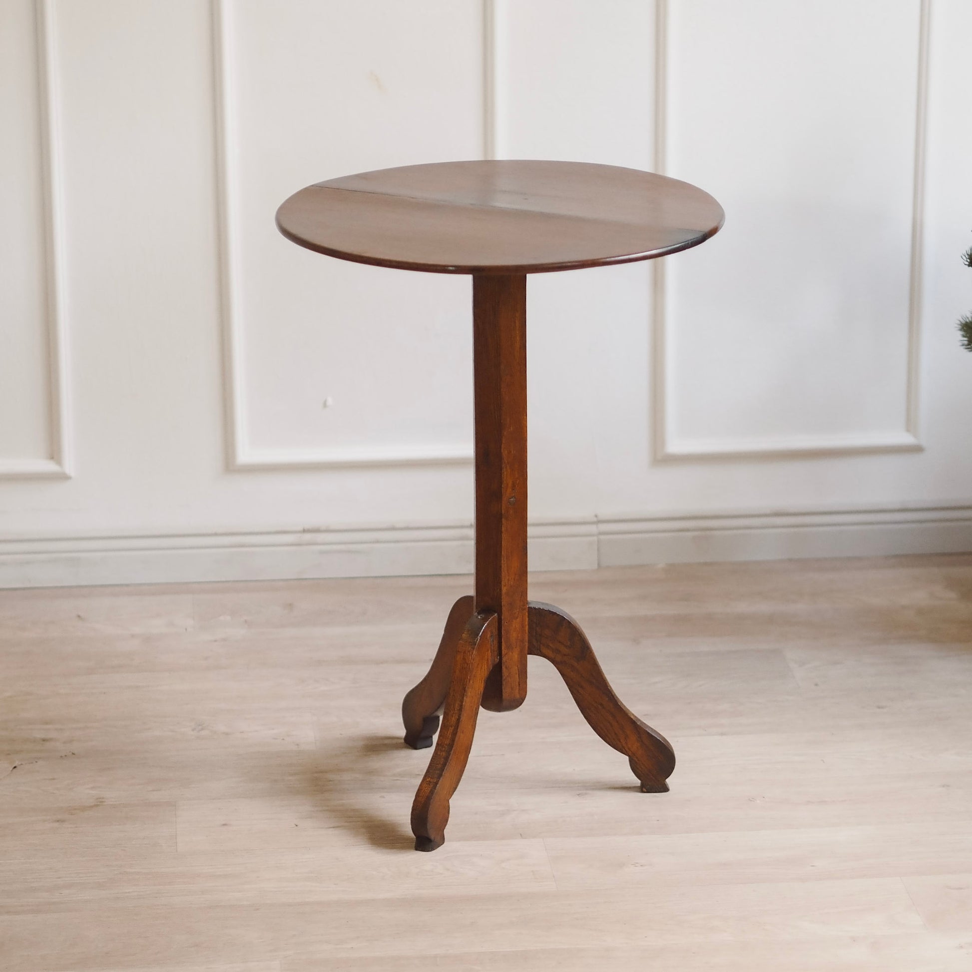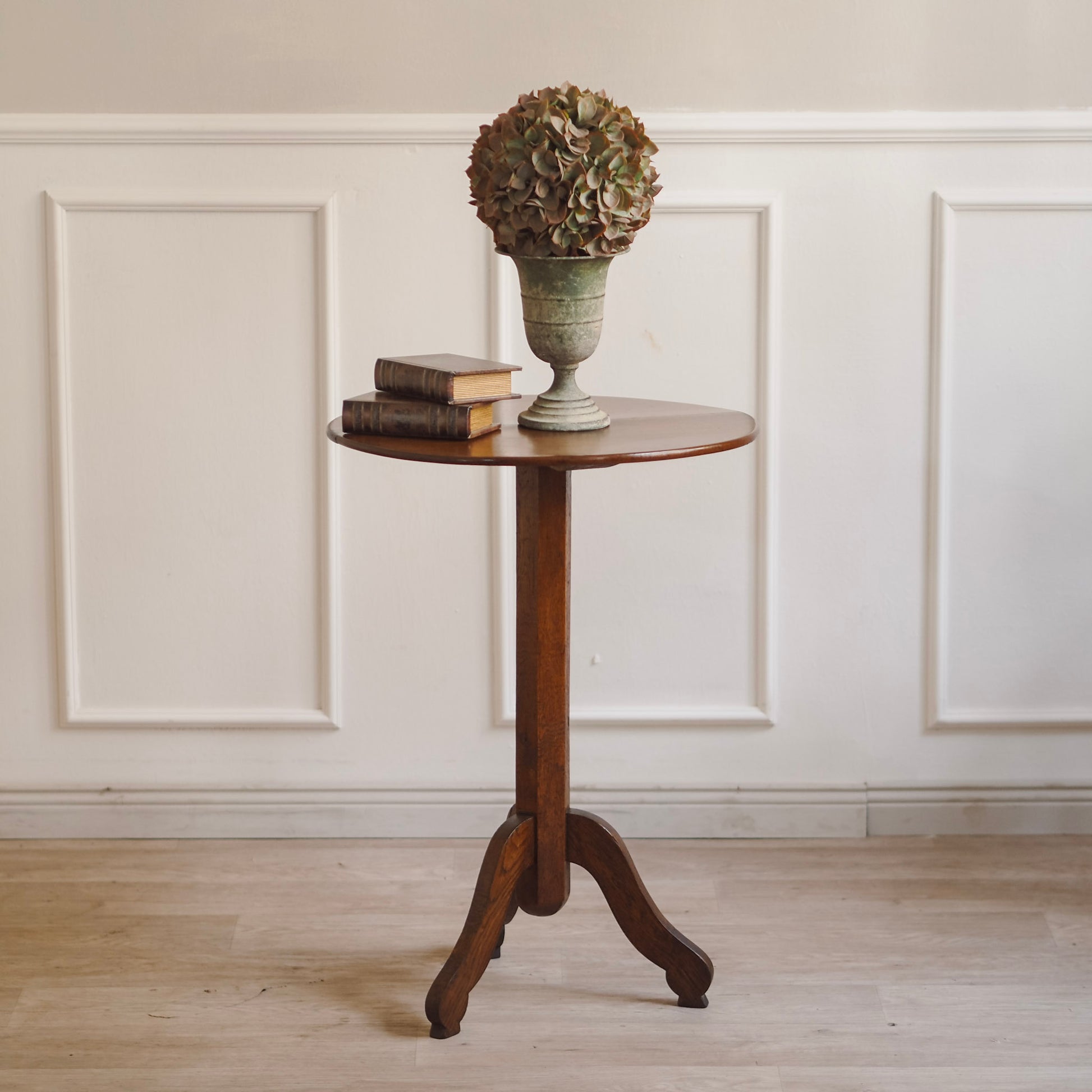 Dieser zierliche Beistelltisch stammt aus der Zeit um 1900 und ist ein klassischer Tripod-Salontisch. Die runde Platte und das elegant geschwungene Dreibeingestell verleihen ihm eine historische und zugleich zeitlose Ausstrahlung, die sich vielseitig kombinieren lässt. Als Beistell-, Wein- oder auch Blumentisch stilvoll einsetzbar. Perfekt für moderne als auch nostalgische Räume.