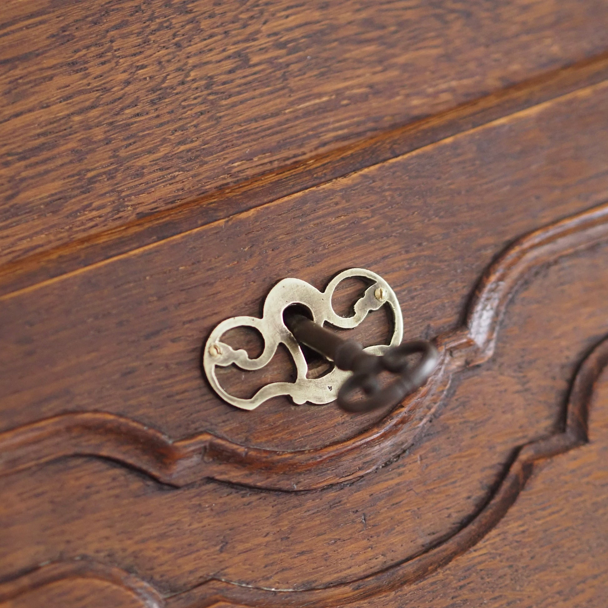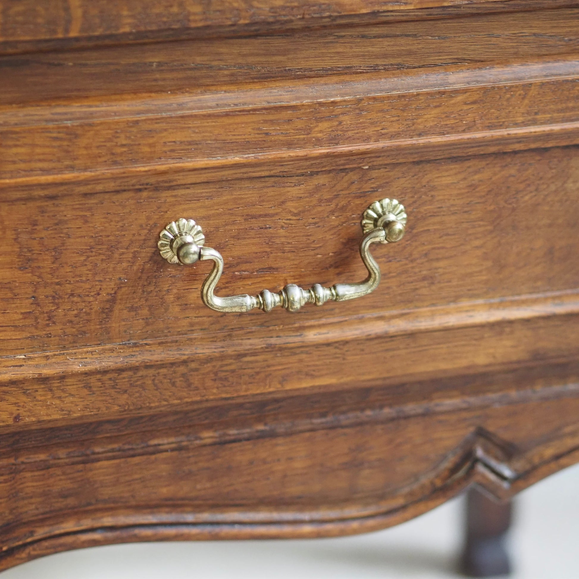 - Aufwendig profilierte Front mit originalen Messingbeschlägen, grazil geschwungene Beinchen