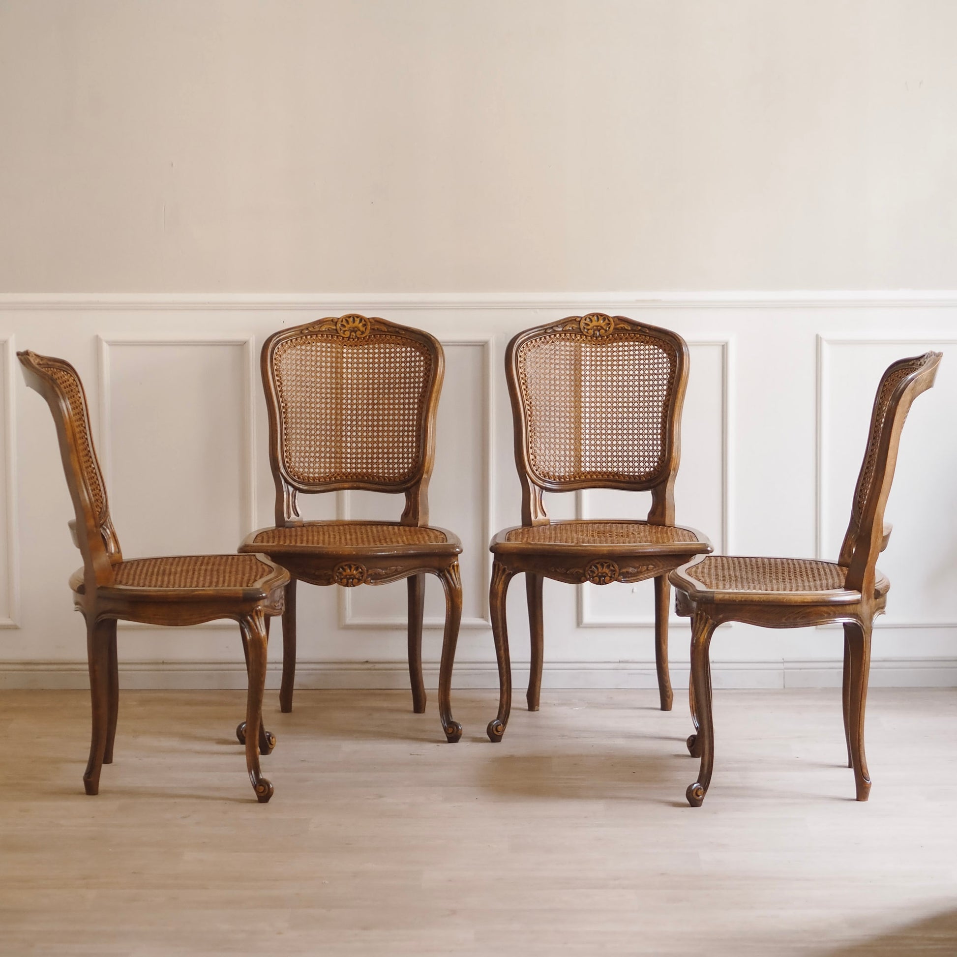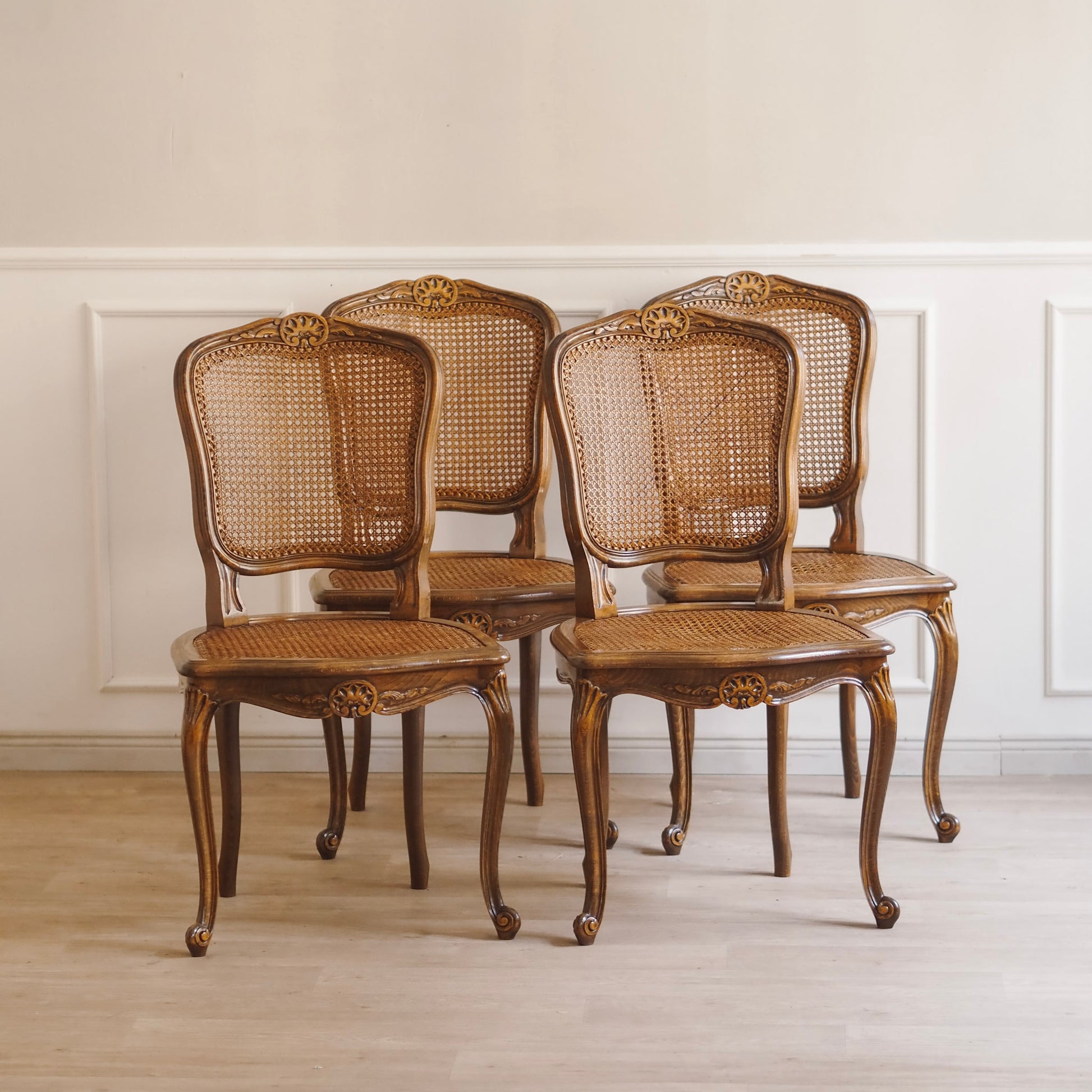 EPOCHE 1920 - 4 Louis XV Stühle mit Wiener Geflecht, Stuhl Set Esszimmer