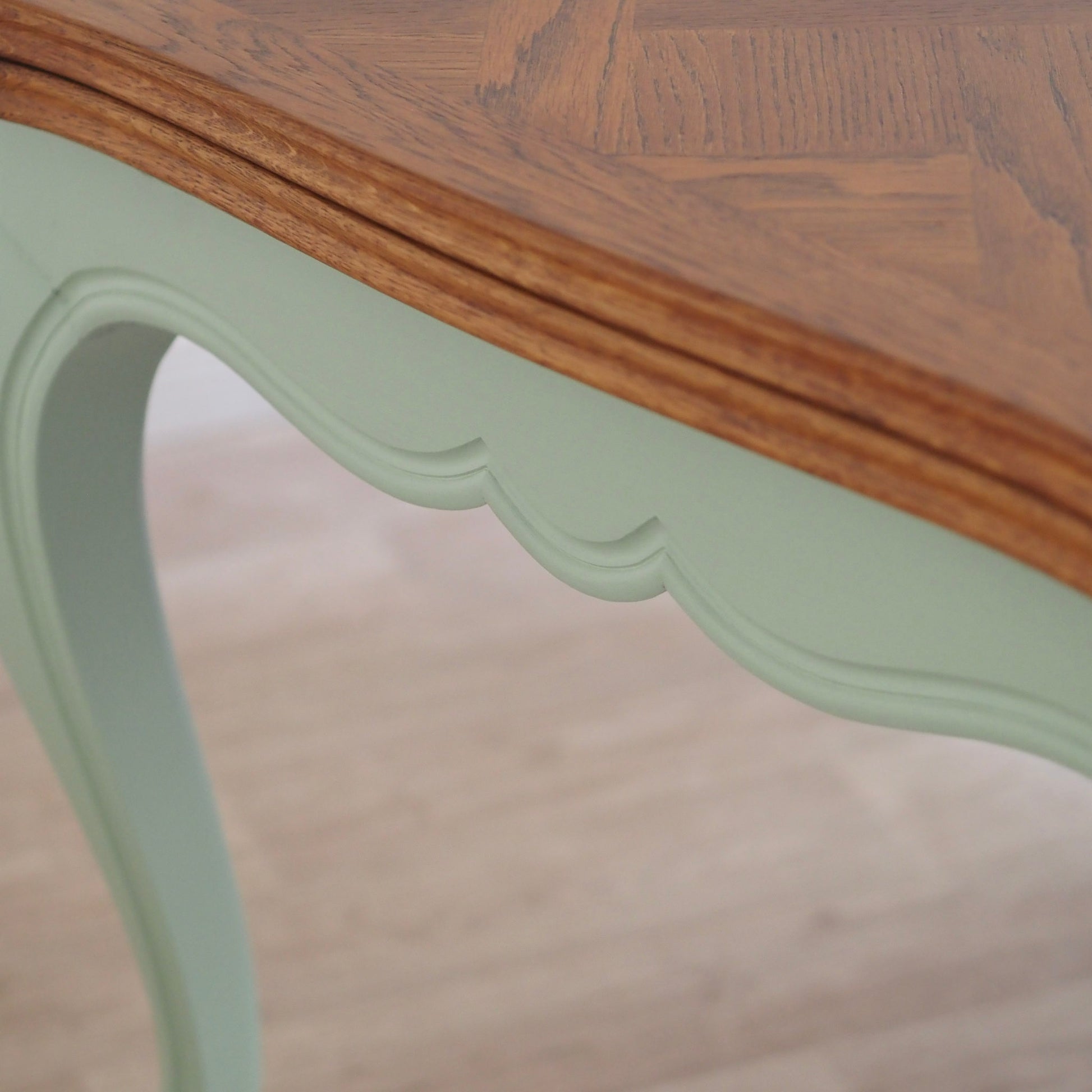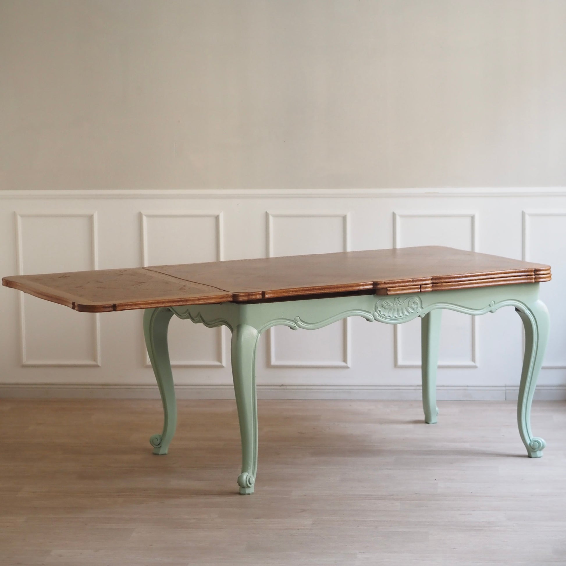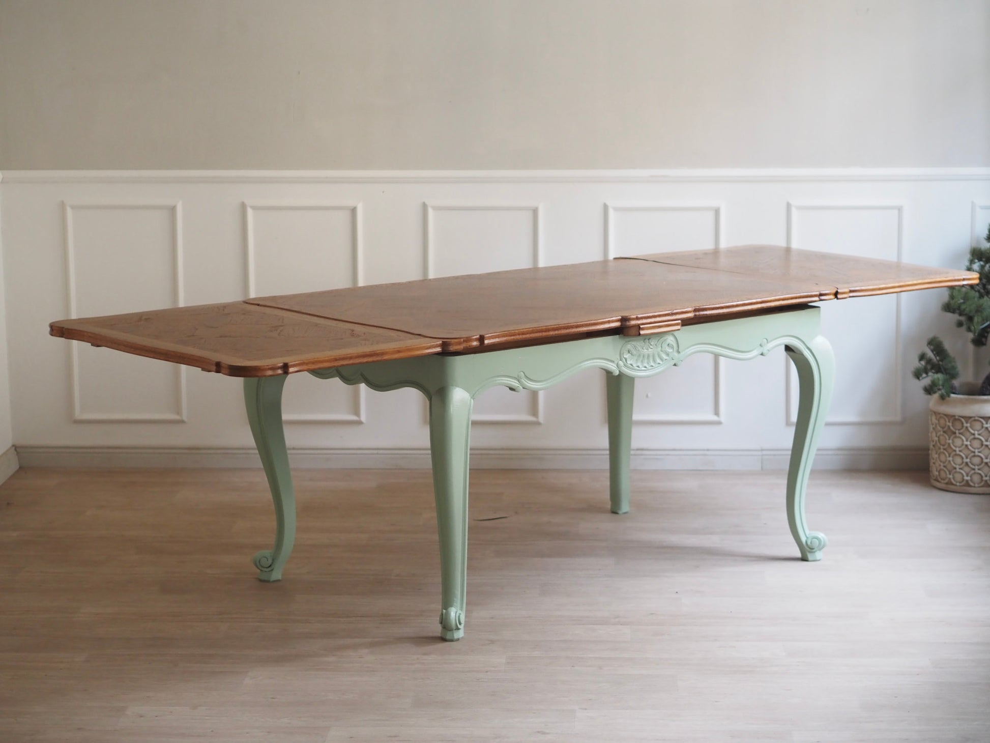 EPOCHE 1920 - Französischer Landhaus Esstisch in mintgrün mit heller Intarsienplatte
