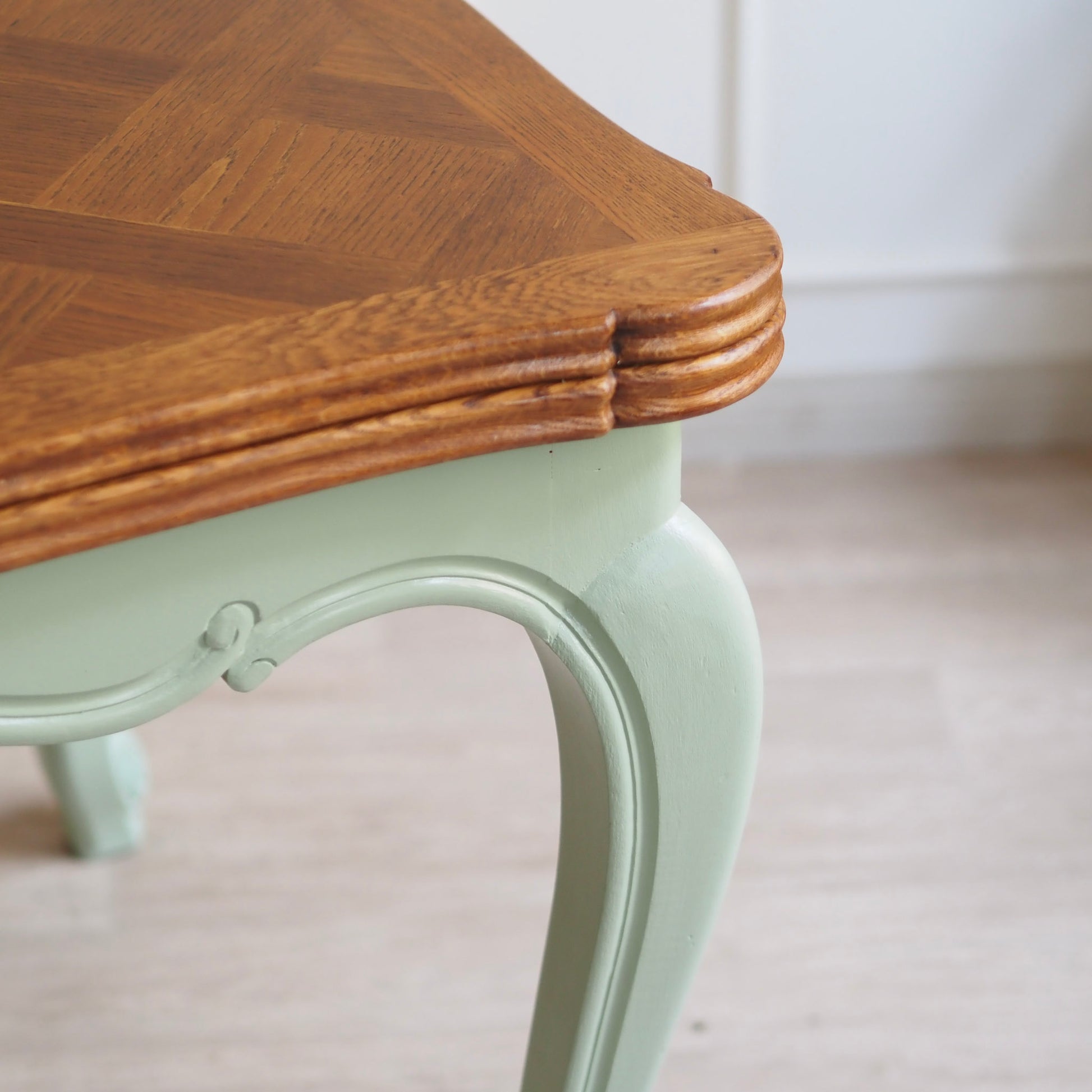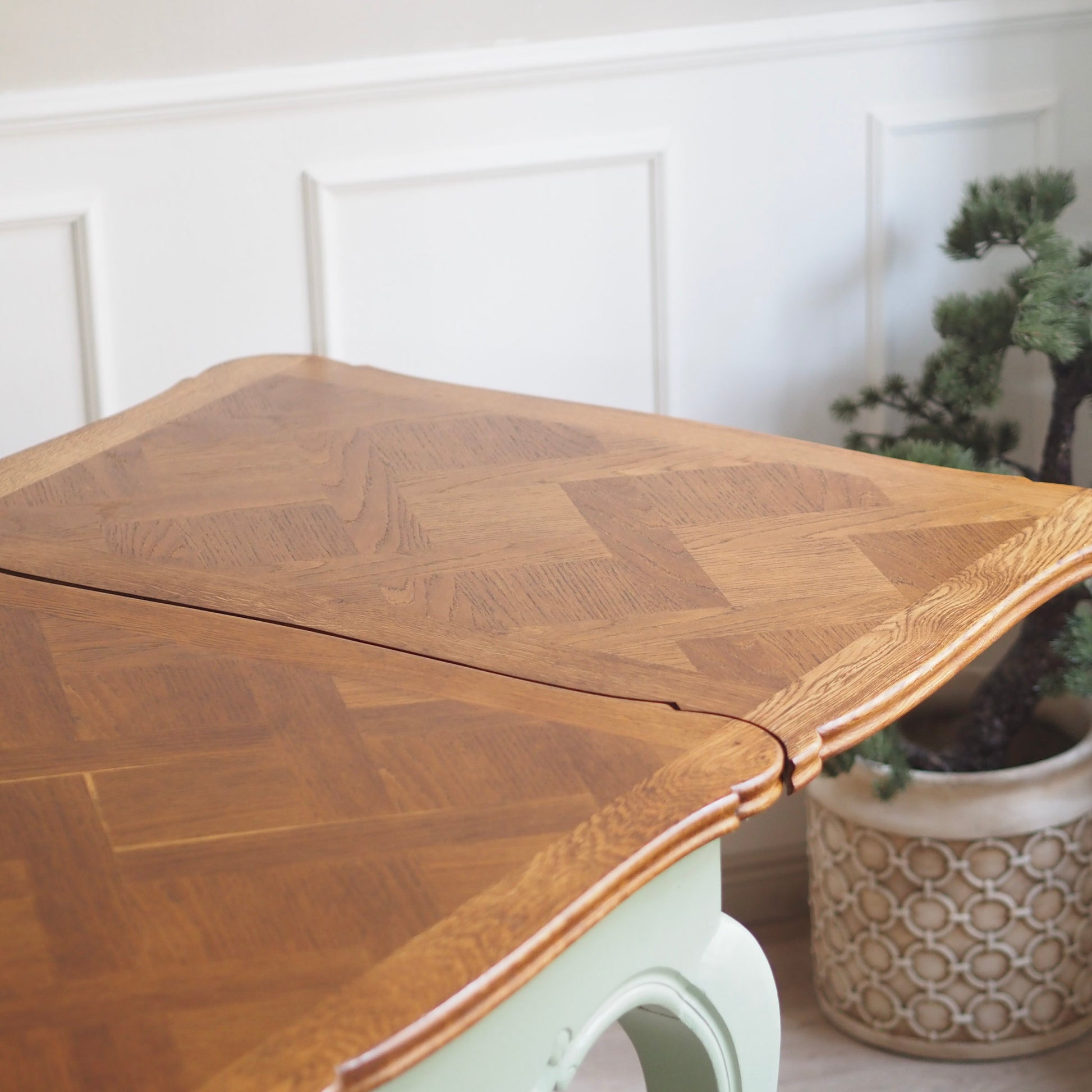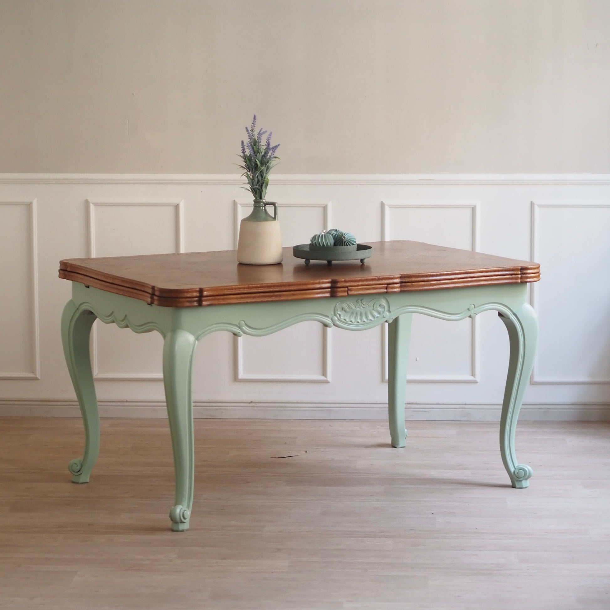 EPOCHE 1920 - Französischer Landhaus Esstisch in mintgrün mit heller Intarsienplatte