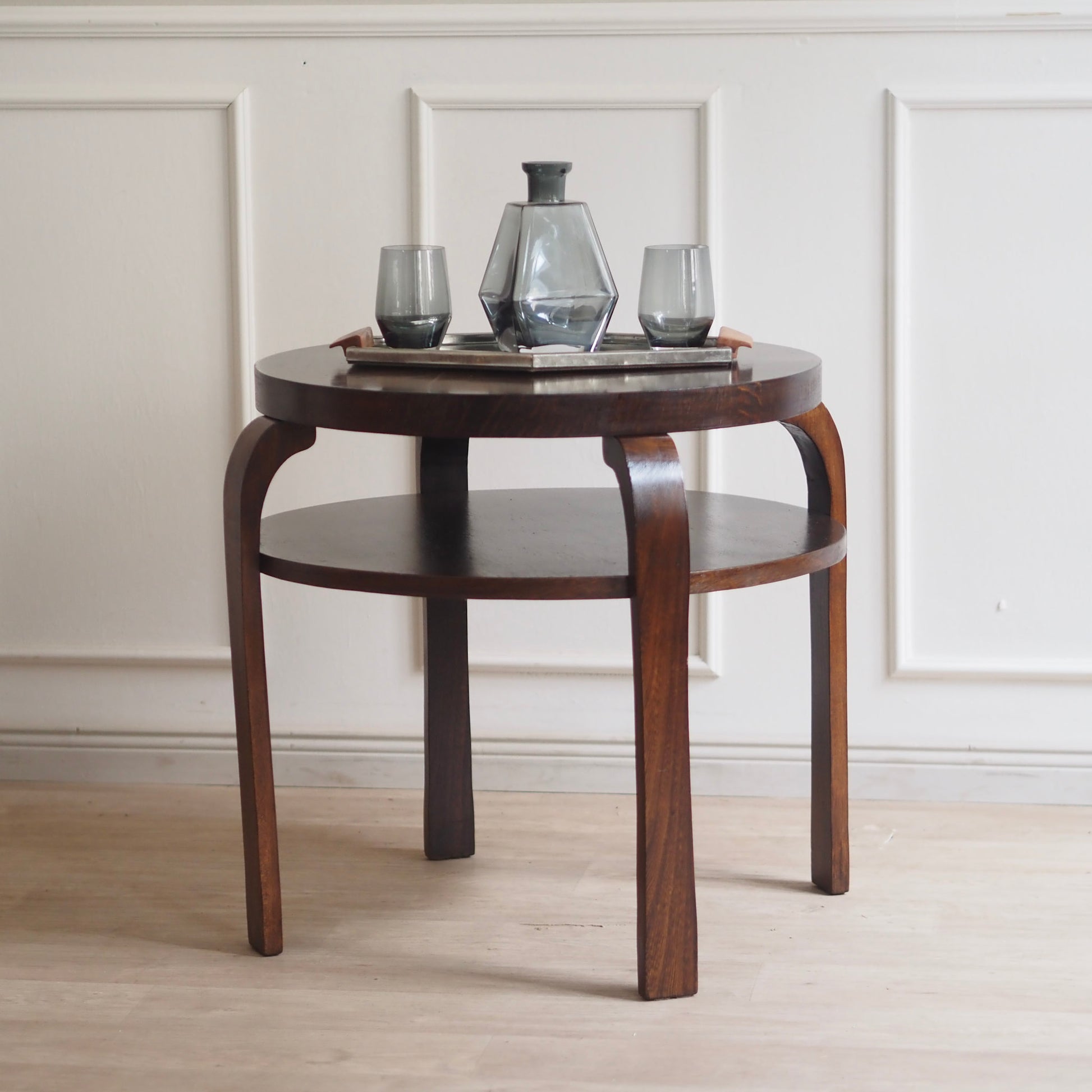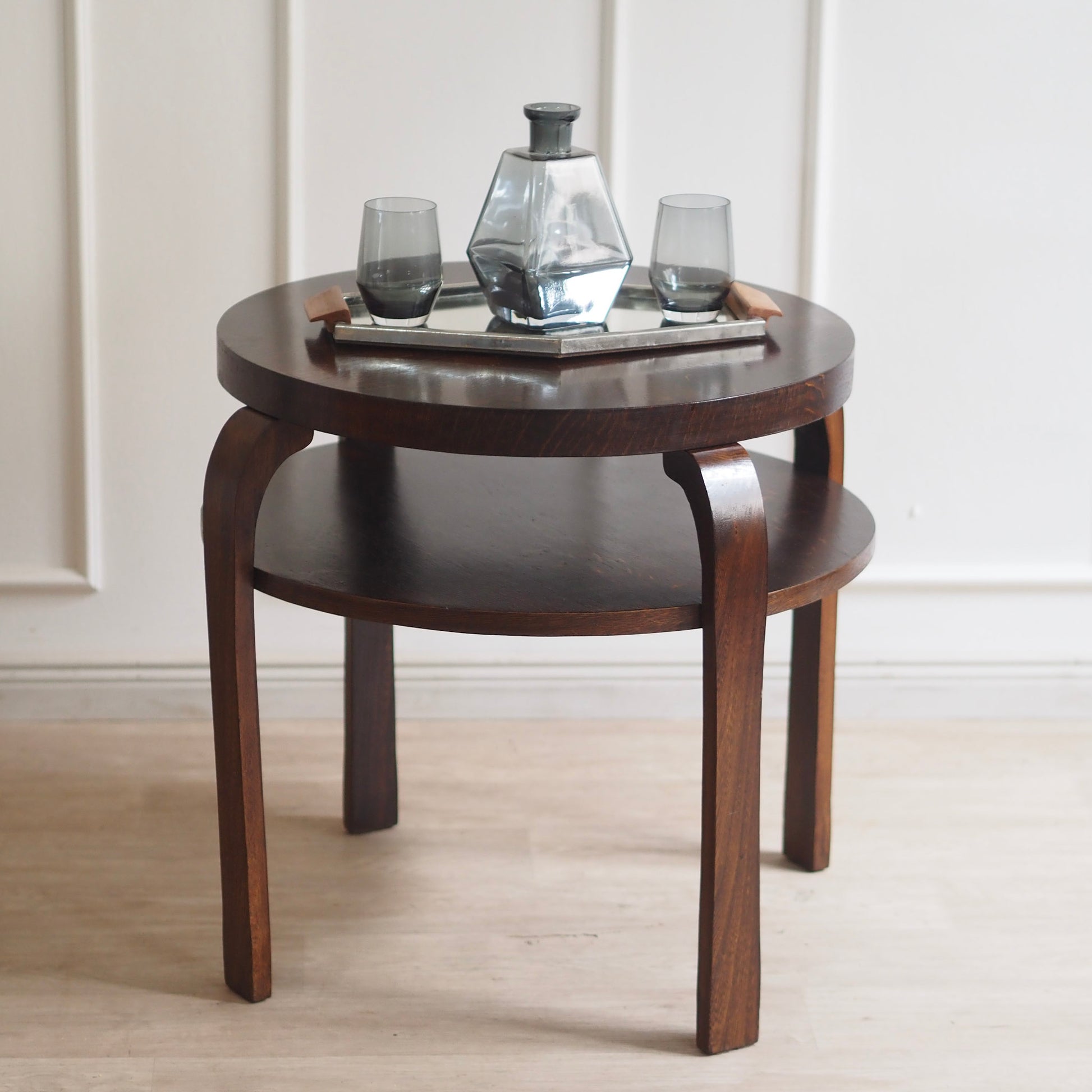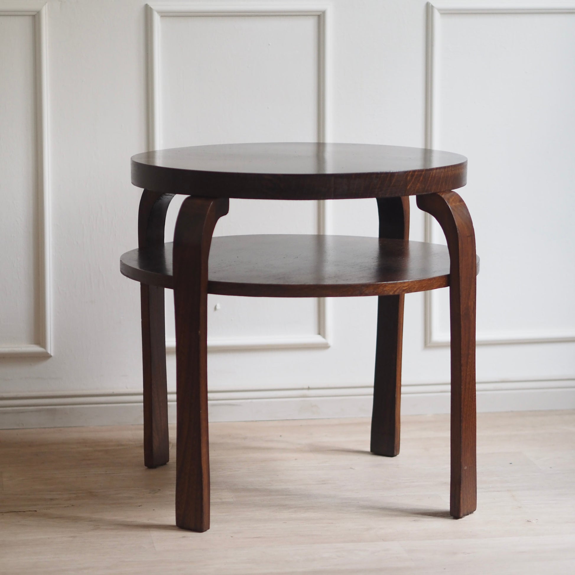 EPOCHE 1930 - Art Déco Bauhaus Sofatisch rund, zweistufig - Beistelltisch