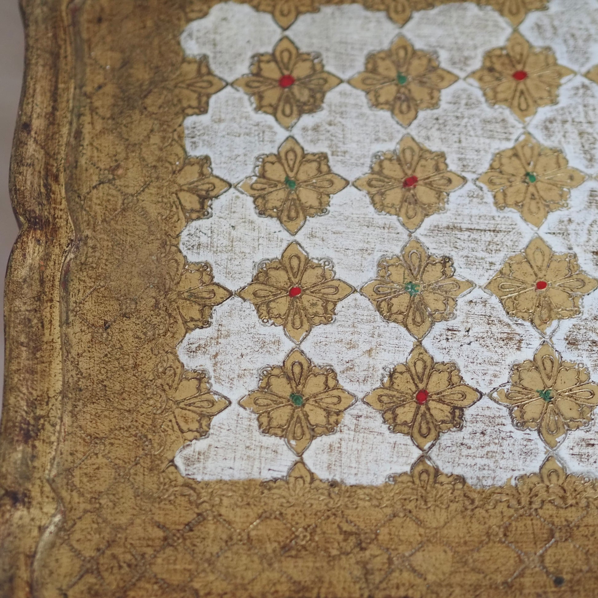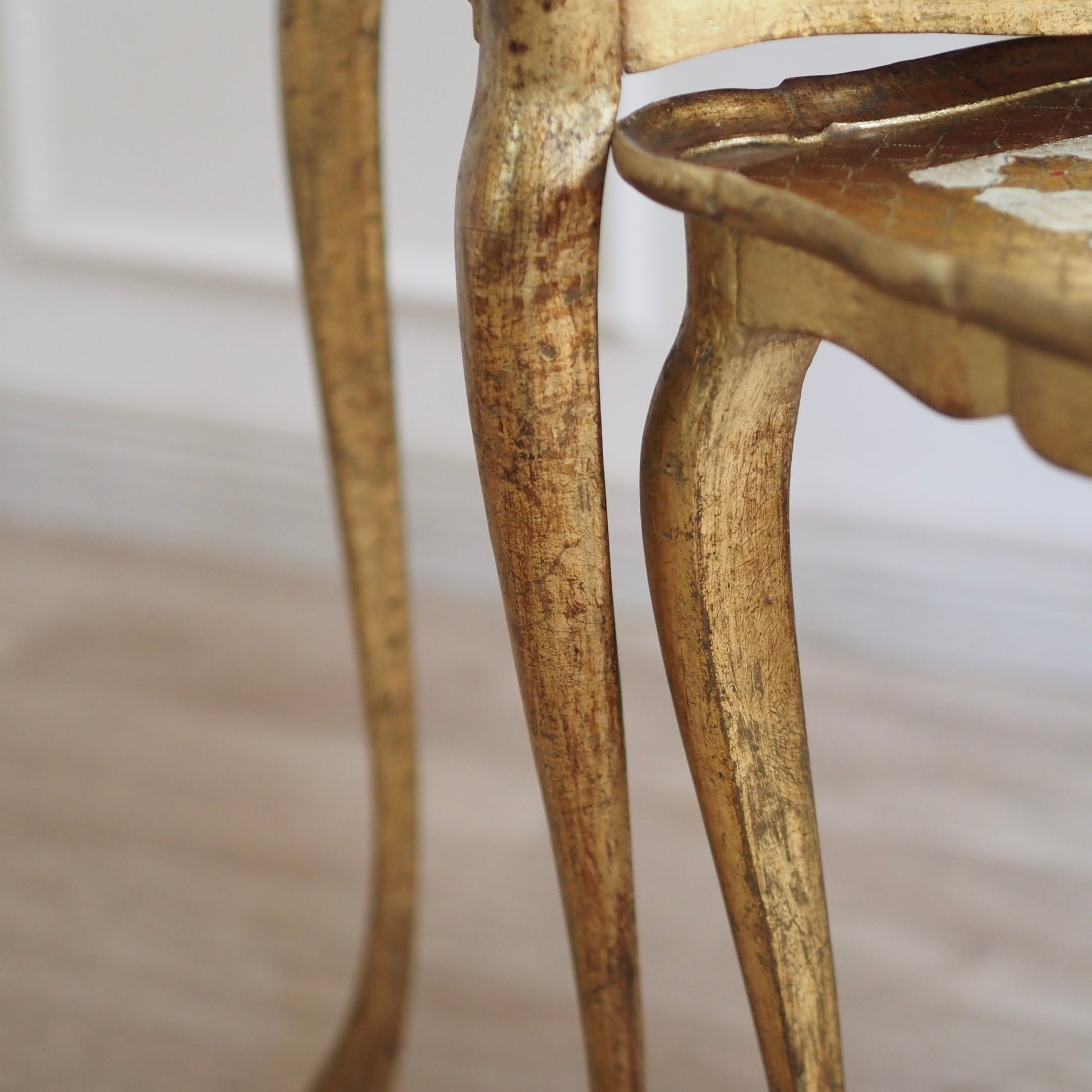 Handbemalte Italienische Vintage Satztische Florentiner Stil, Beistelltisch Set Gold