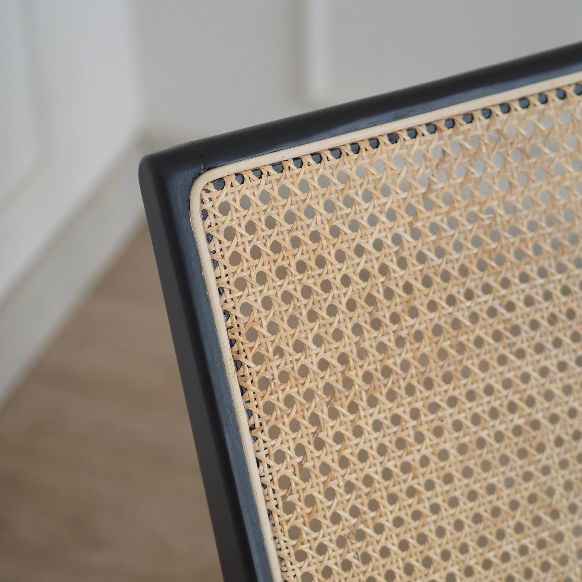 Moderner Loungesessel im Mid-Century-Stil mit markanter Formensprache und geflochtenem Wiener Geflecht. Inspiriert vom dänischen Design der 1950er-Jahre – schlicht, funktional, zeitlos. Ideal als Akzentstuhl für stilvolle Leseecken oder minimalistische Wohnräume.